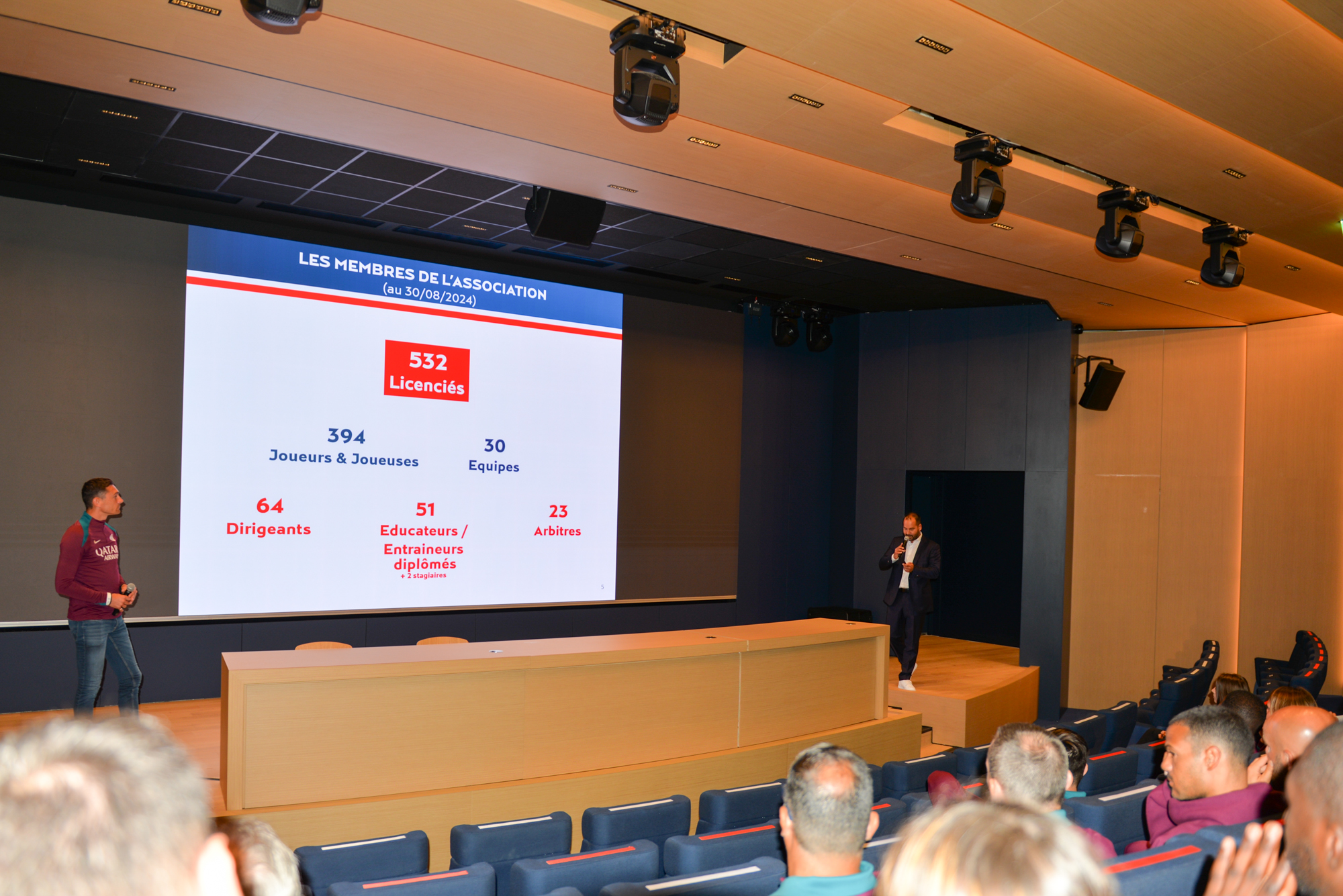 Ce samedi 31 aout 2024, nos éducateurs et dirigeants étaient réunis dans le merveilleux auditorium du Training Center de POISSY pour la présentation de cette nouvelle saison 2024/2025 de notre Association.